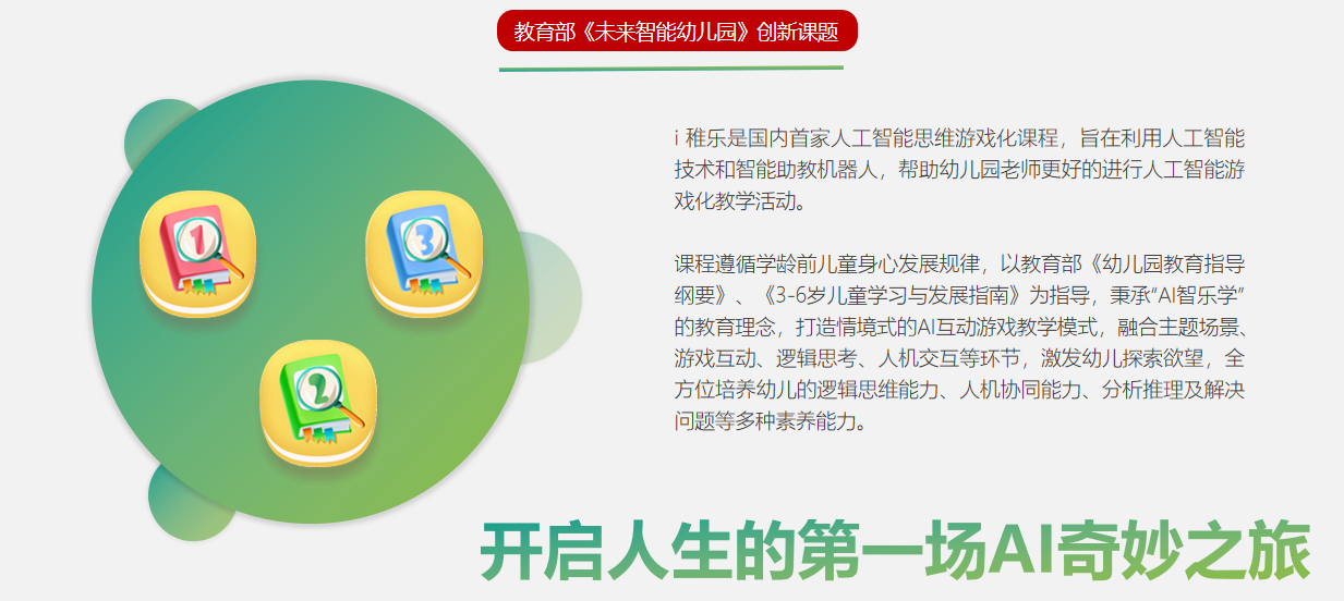 i 稚乐是针对教育部(未来智能幼儿园)创新课题而自主研发的国内首家人工智能思维游戏化课程